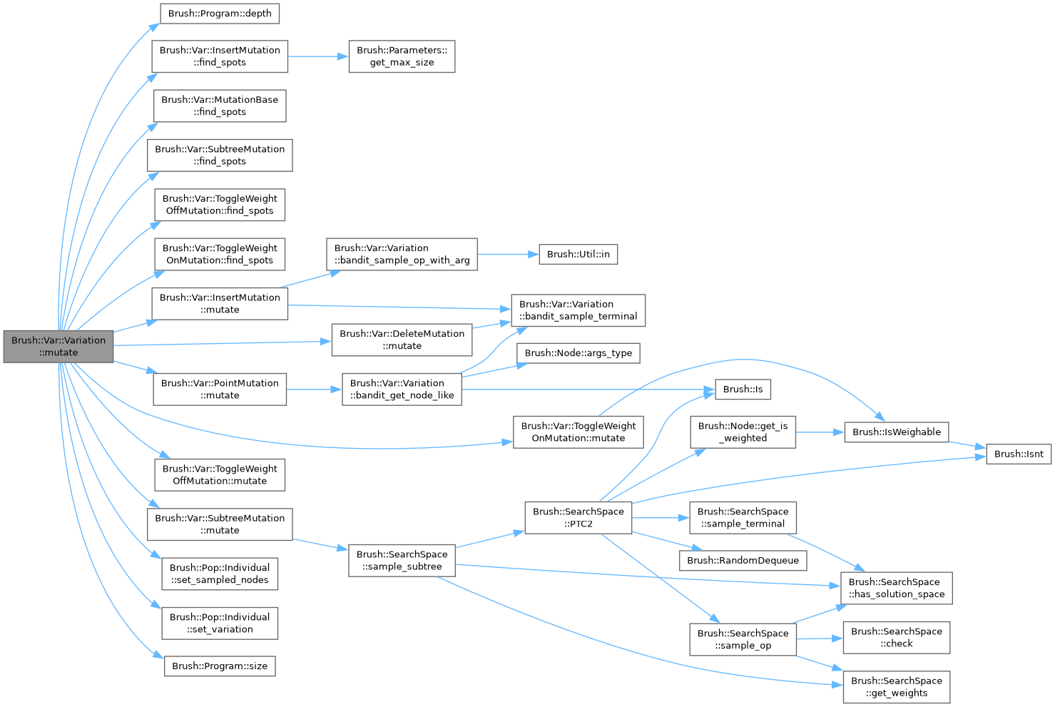 The Variation class is responsible for performing individual-level variations and handling the variation of a population in Brush. It contains methods for crossing individuals, mutating individuals, and varying a population.