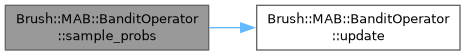 This class provides functionality for sampling probabilities and updating rewards for different arms. The bandit should somehow behave stocasticaly when called twice in a row without being rewarded, because some mutations may require multiple sampling from the search space. Also, the bandit should have a functionality to return smapling probabilities, instead of just the chosen arm.